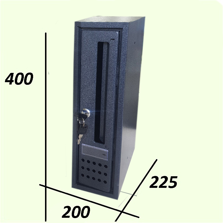 Najzastupljenije sanduče na našem tržistu. Ovo sanduče se proizvodi u jednoj sivoj boji a postoje pet kombinacije sa jednim, dve, tri, četiri i pet sandučića. Pakovanjem ovih kombinacija dobijate poštanski ormar koji prilagođavate prema Vašim potrebama i željom stanara jedne stambene zgrade. Poštanski sandučići TIP 8 su uradjeni od kvalitetnog lima debljne hv lim 0.8 i 0.6 Zastita elektrostaticka plastifikacija ral 7032 i 7016. Cilindricna bravica sa 2 kljucica. Dimenzije ovih sandučića su: TIP 8-1 dim: 400x110x225 ;TIP 8-2 dim: 400x200x225 ;TIP 8-3 dim: 400x280x225;TIP 8-4 dim: 400X365X225; TIP 8-5 dim: 400X450X225